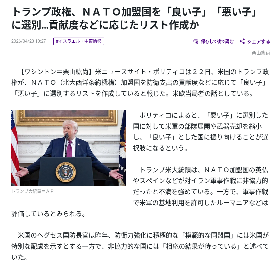 | … | 9無念Nameとしあき26/04/23(木)11:50:52No.1402819113そうだねx9アメリカの負け |
