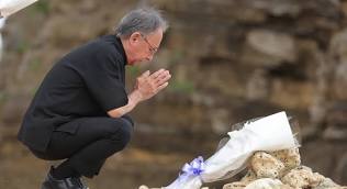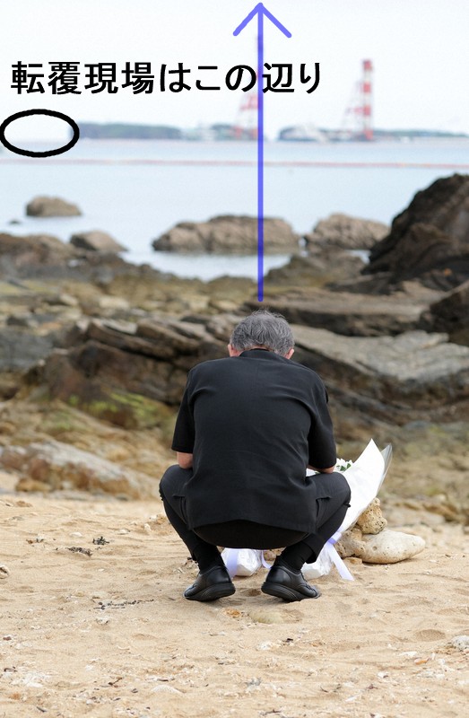 デニー時が献花した方向も転覆事件現場を向いてません