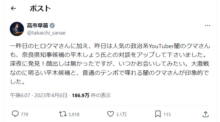 | … | 64無念Nameとしあき26/04/23(木)18:59:10No.1402886531+国民にとって必要なことがあれば高市さん自身が発信するんだから |