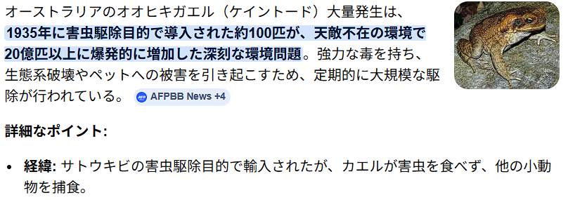 | … | 36無念Nameとしあき26/04/24(金)00:54:04No.1402970183+>食用目的で輸入したウシガエルを繁殖させるための餌がアメリカザリガニだったのだ |