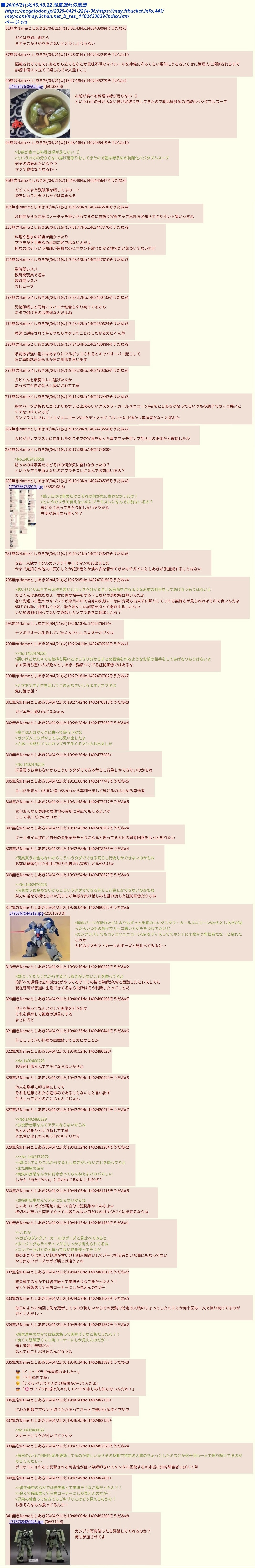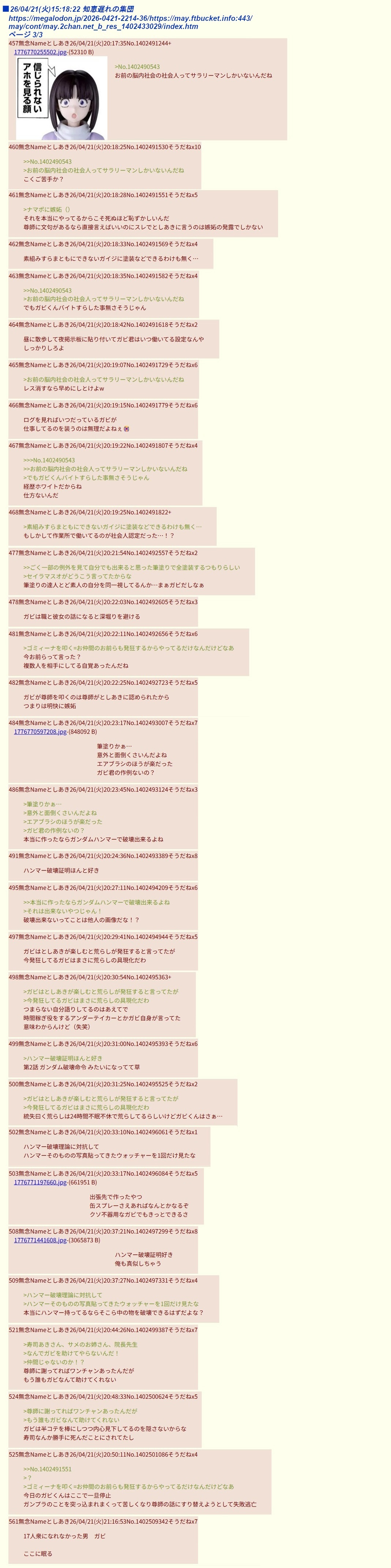 | … | 145無念Nameとしあき26/04/24(金)15:09:20 ID:waclRKwENo.1403051437+>>結局ガビがスレ伸ばしてるし |