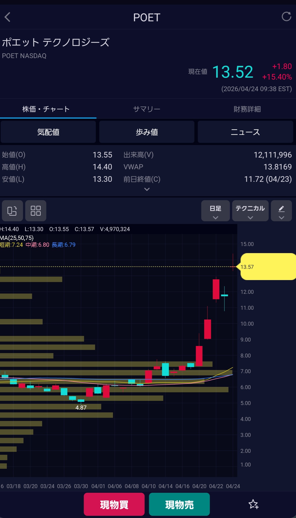 | … | 96無念Nameとしあき26/04/24(金)22:45:39 ID:v7xd7aPsNo.1403150411そうだねx1マイクロンは何度かぶつかった天井からの綺麗な高値更新ですねので |