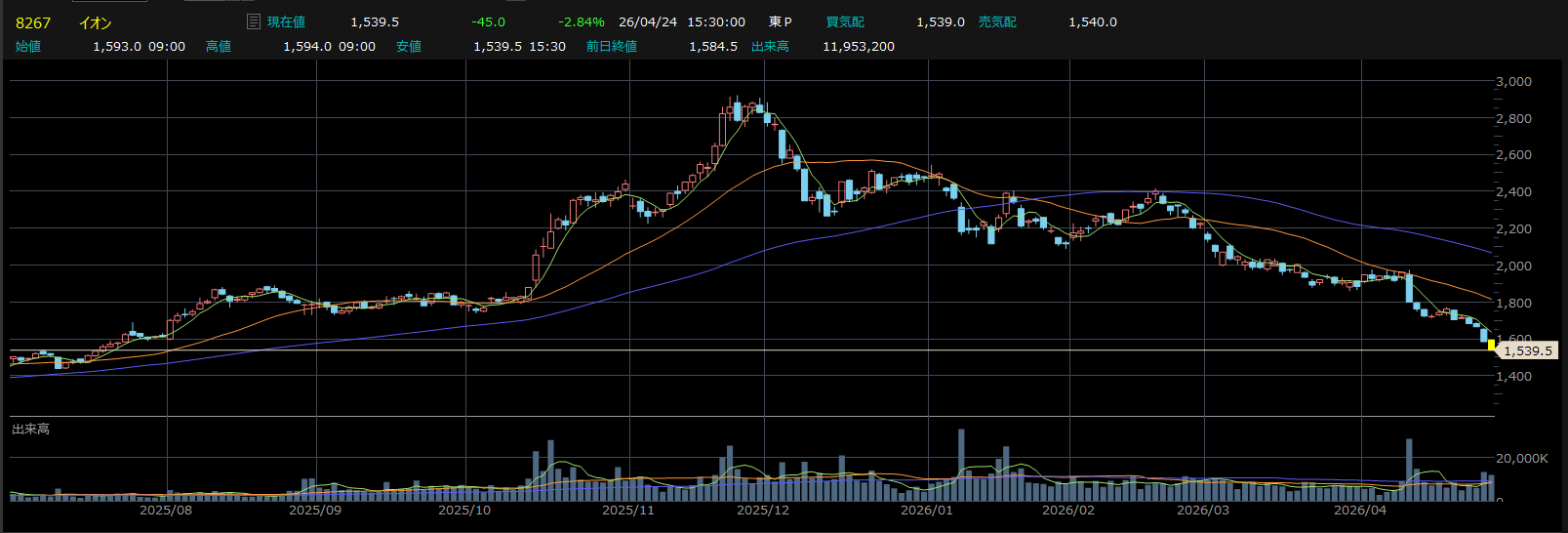 | … | 402無念Nameとしあき26/04/24(金)23:45:05 ID:He6L4iisNo.1403163755+第一三共はまだ下がり続けるし |