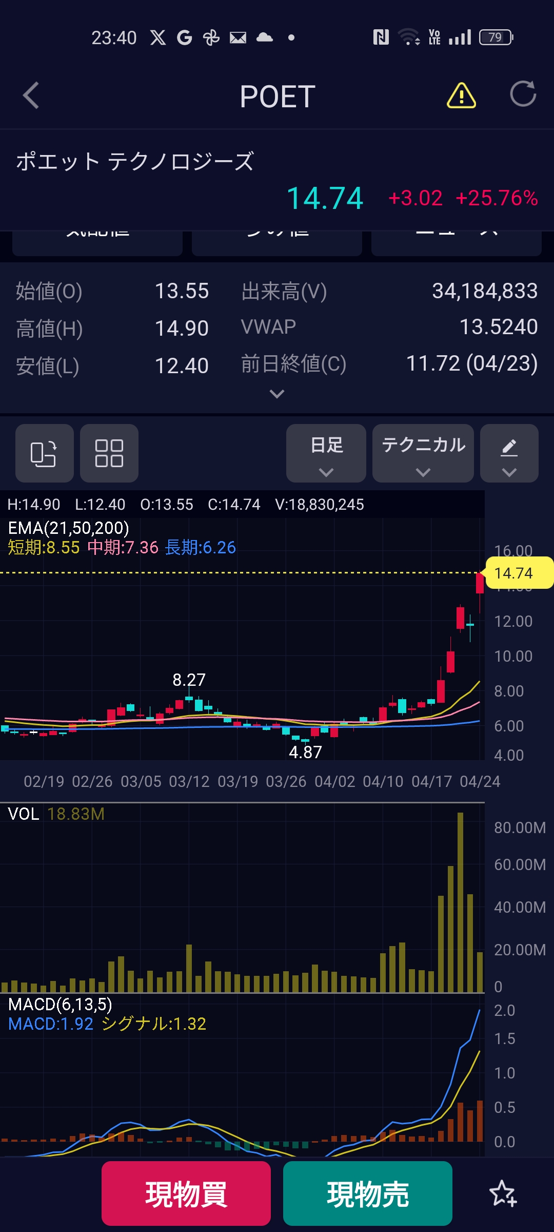 | … | 41無念Nameとしあき26/04/24(金)22:38:51 ID:EmTRI7UINo.1403148732そうだねx2SOXLちゃん直近安値から一月かからず3バガー達成ので |