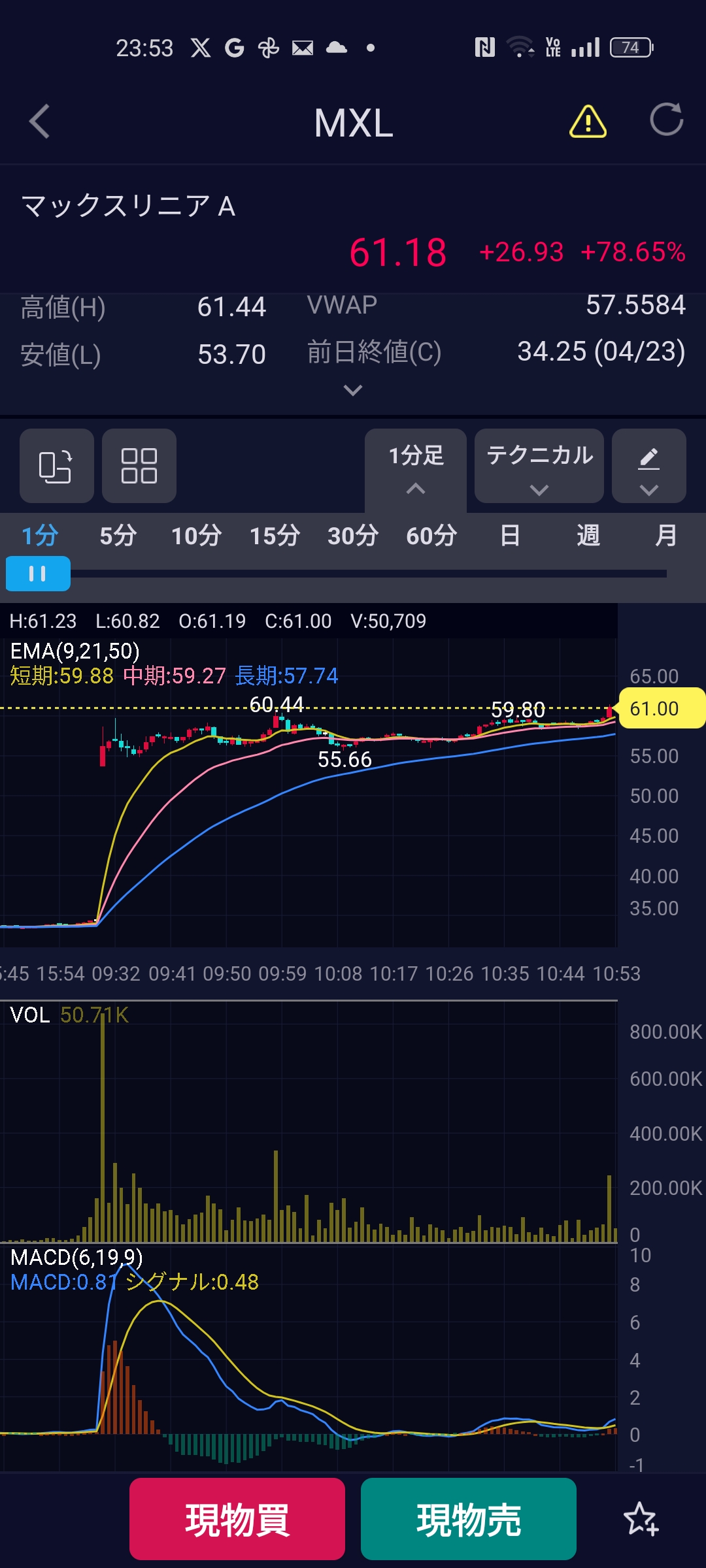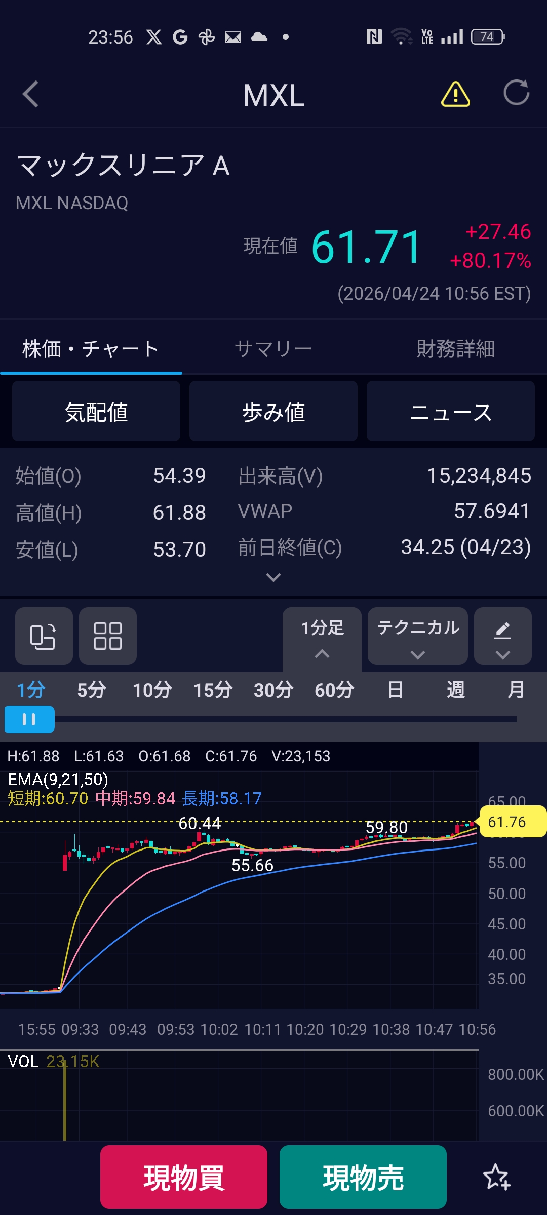| … | 439無念Nameとしあき26/04/24(金)23:57:26 ID:.qYZ9.H2No.1403166084+ 1777042646304.jpg-(544358 B) 56ドルに指値入れてたら買えてたので |