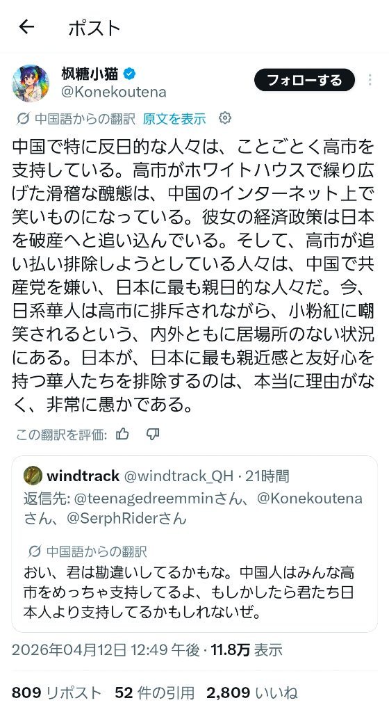 | … | 94無念Nameとしあき26/04/25(土)20:48:11No.1403365713そうだねx5 1777117691539.jpg-(214302 B) 中国人「高市最高だろ」 |