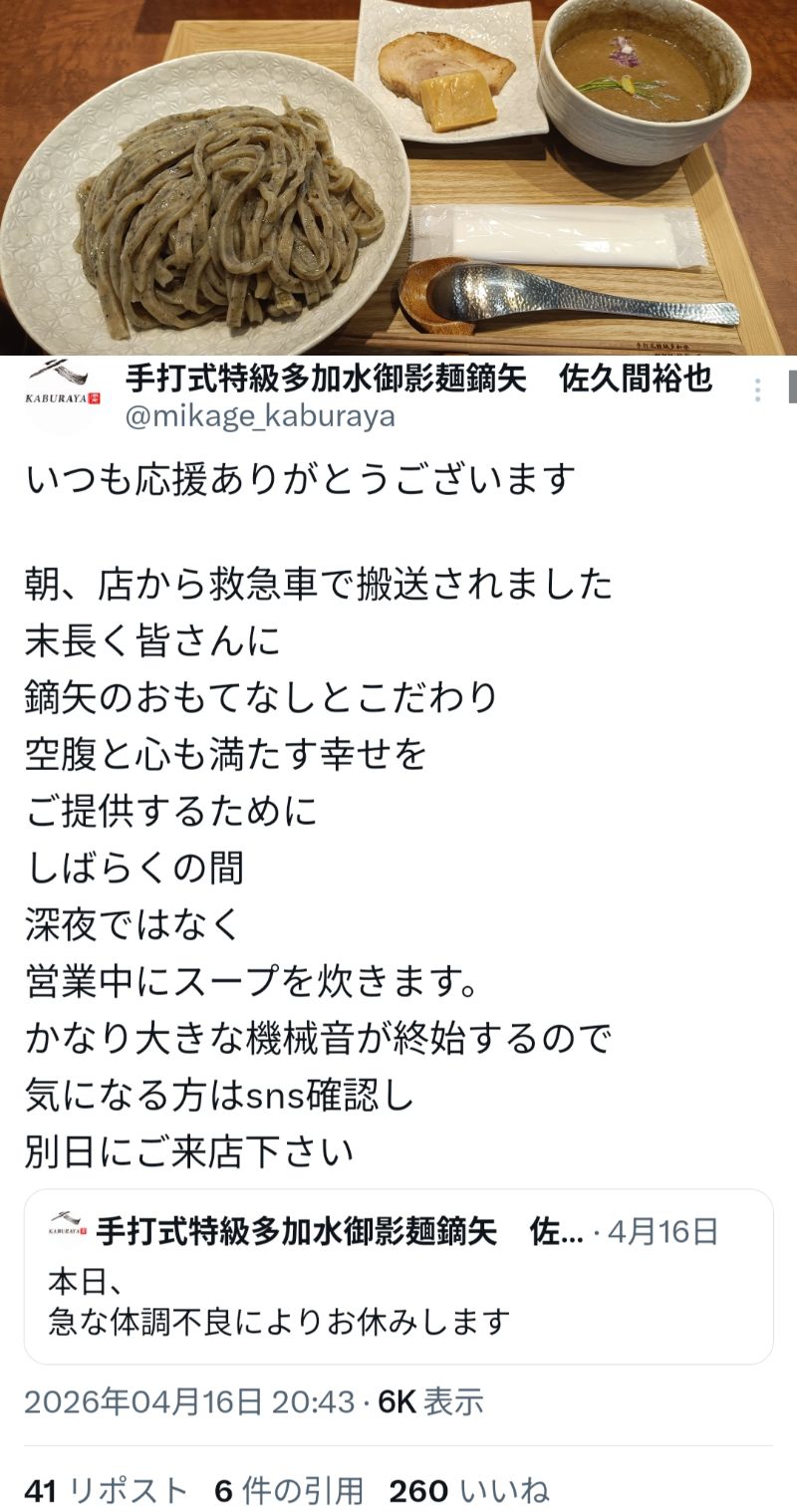 | … | 5無念Nameとしあき26/04/25(土)19:48:58No.1403349105そうだねx1これからの季節はやっぱりつけ麺 |