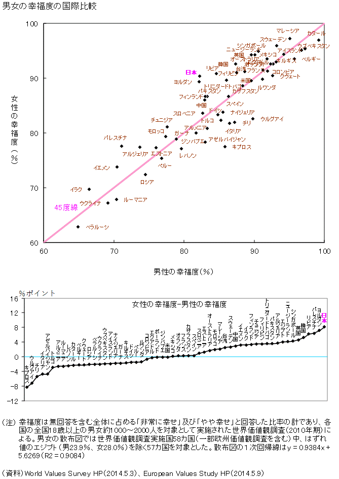| … | 12無念Nameとしあき26/04/26(日)00:42:36No.1403423523そうだねx2>日本は世界一女性の幸福度が男性の幸福度より高い国です |
