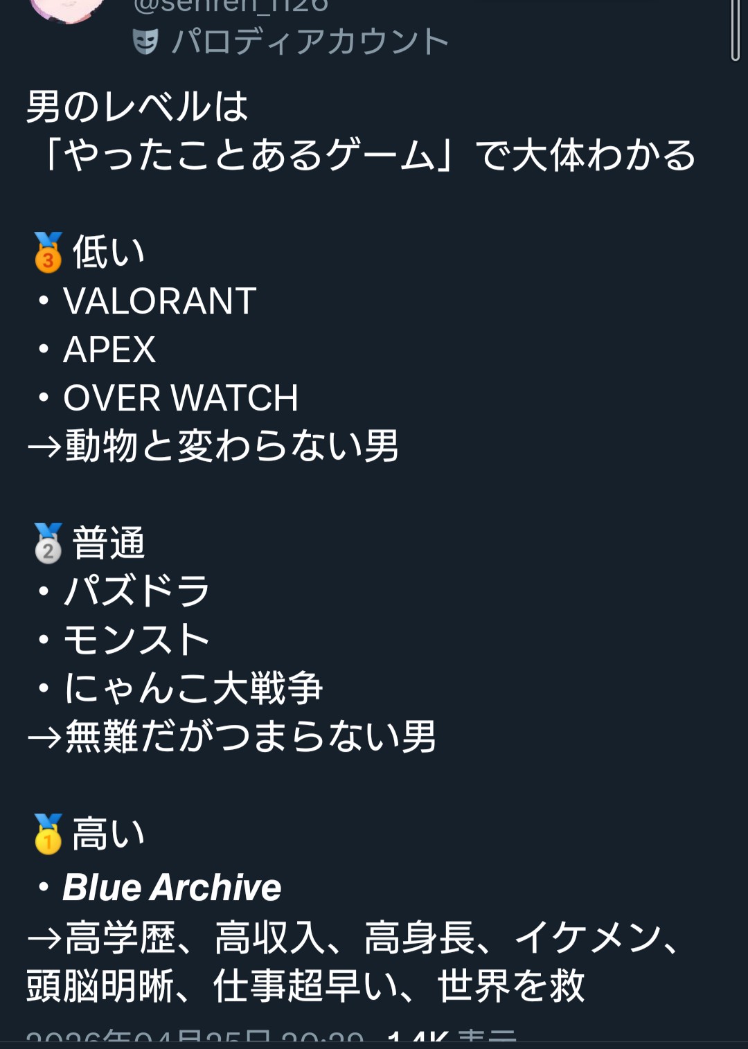 | … | 15無念Nameとしあき26/04/26(日)08:21:10No.1403456701+>ブルアカの考察してる人ってもう存在しないピースでパズル組んでるじゃんね |