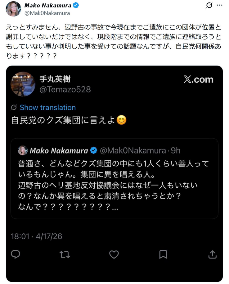 | … | 22無念Nameとしあき26/04/26(日)09:34:24No.1403471319そうだねx12 1777163664963.png-(352277 B) >辺野古の高校生死亡事件 |