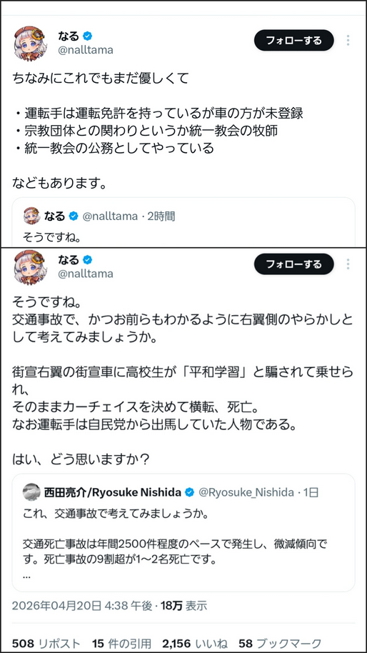 | … | 71無念Nameとしあき26/04/26(日)10:01:37No.1403477320+>選挙大敗して高校生殺してあなたたちの何が勝利なんですか |