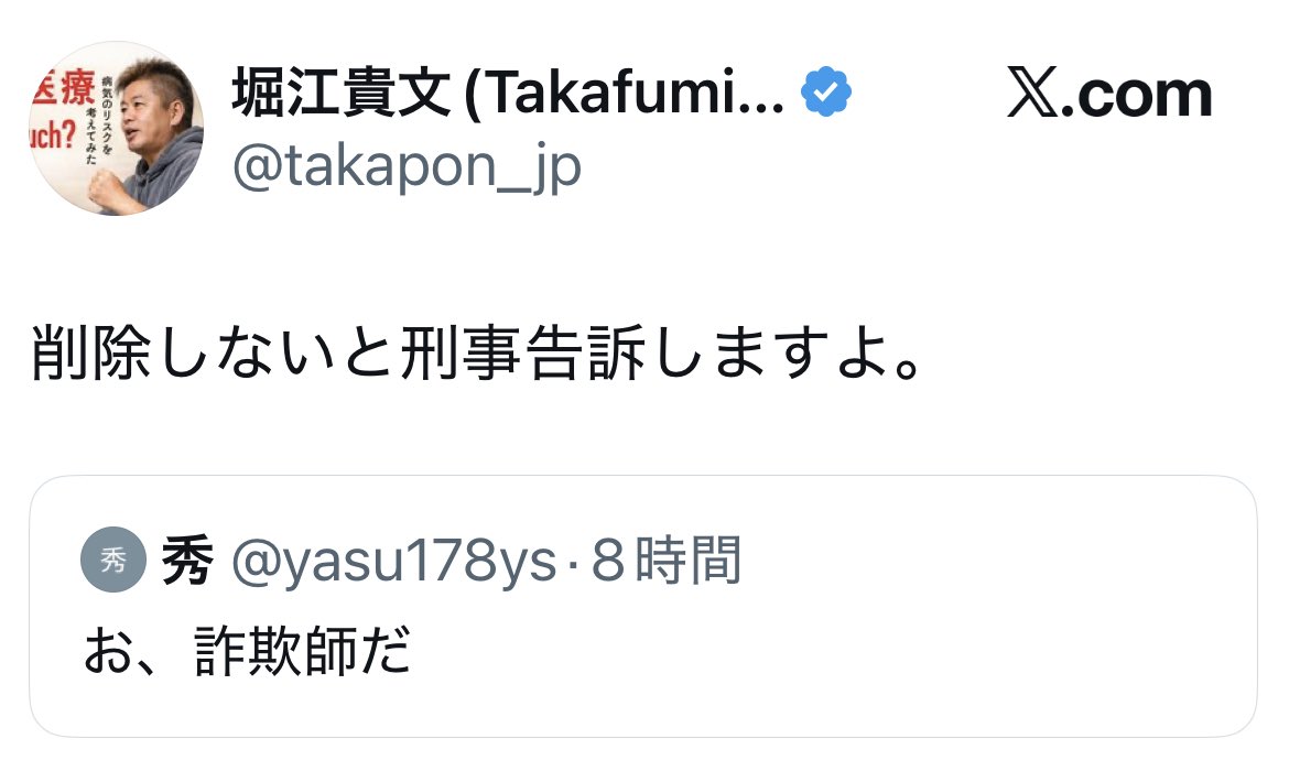 | … | 25無念Nameとしあき26/04/26(日)20:03:11No.1403617958+ホリエモンになら俺の菊の門を貸してやってもいいぜ! |