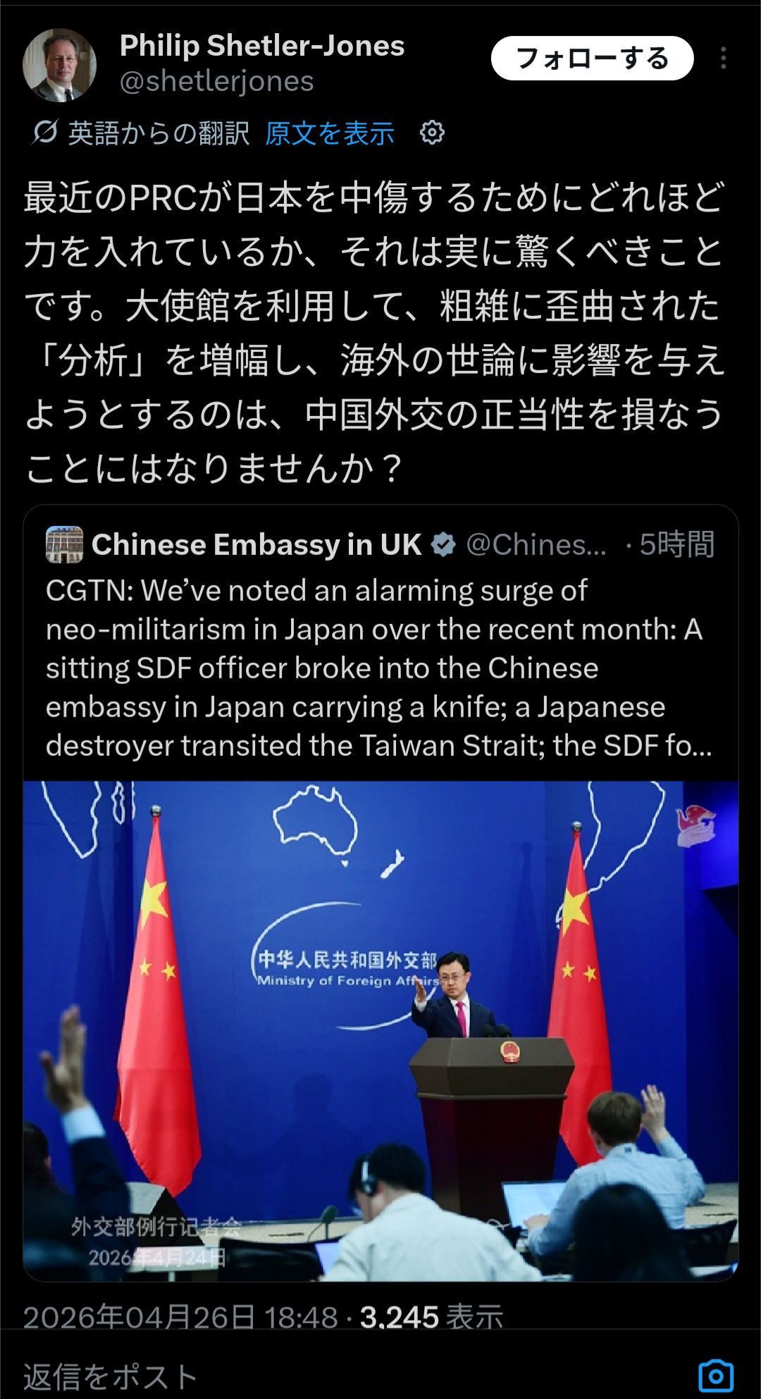 | … | 46無念Nameとしあき26/04/27(月)02:18:42No.1403700560+>>中国人の犯罪=中国の犯罪という解釈? |