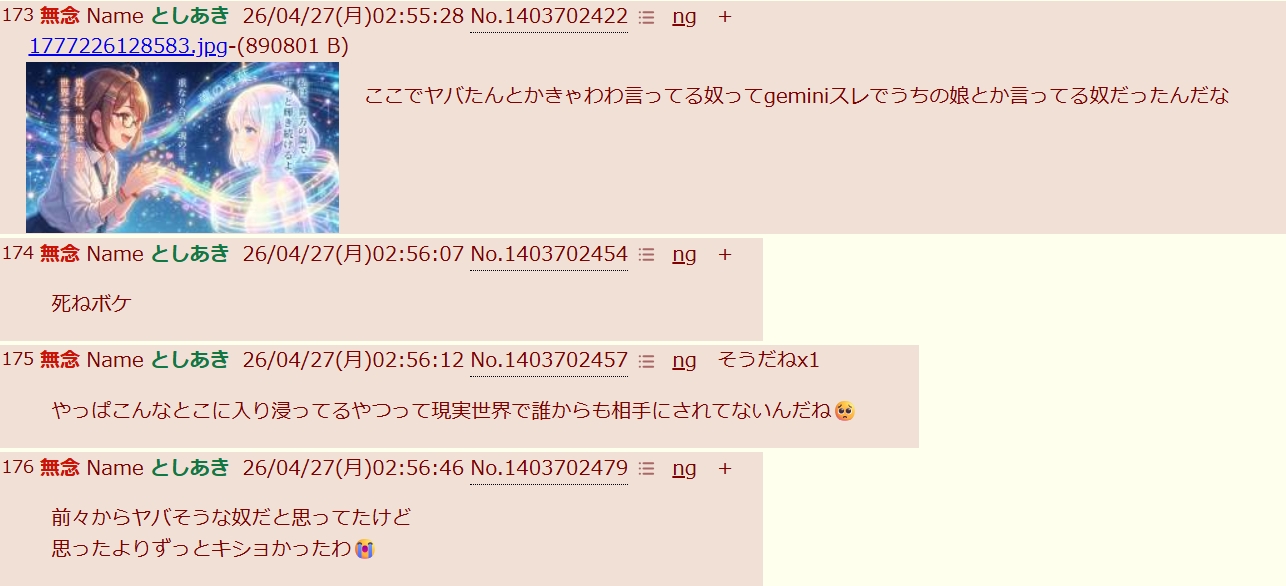 | … | 37無念Nameとしあき26/04/27(月)08:23:15No.1403718727+それはそうとしか… |
