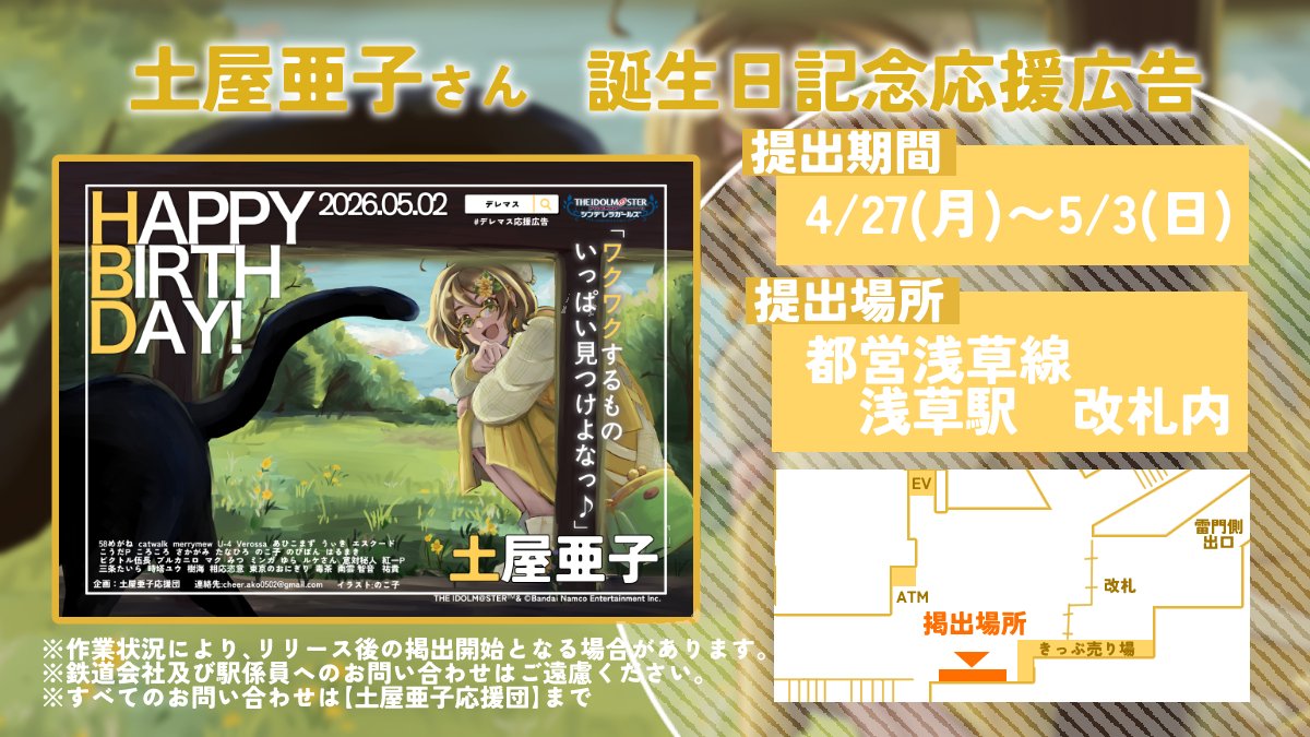 | … | 95無念Nameとしあき26/04/27(月)13:00:51 ID:7ZBH3d8UNo.1403752202そうだねx1 1777262451993.jpg-(181987 B) 浅草に亜子ちゃんハピバ応援広告にゃあ |
