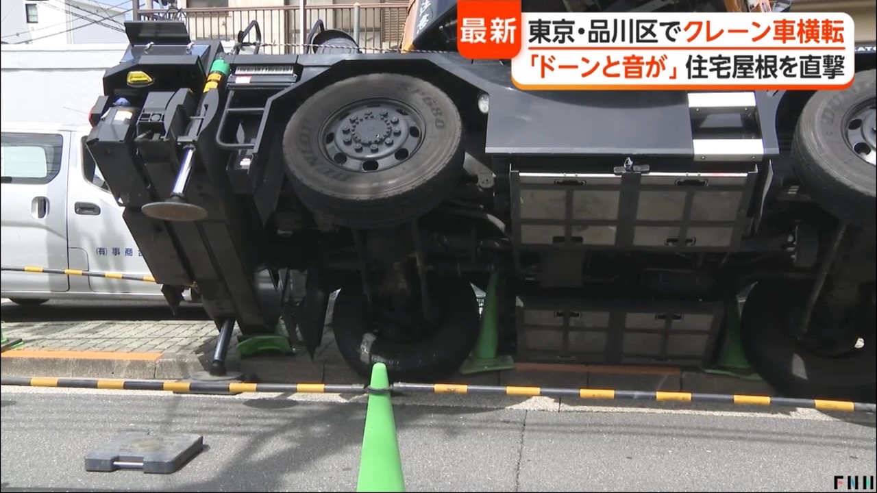 クレーン車が横転