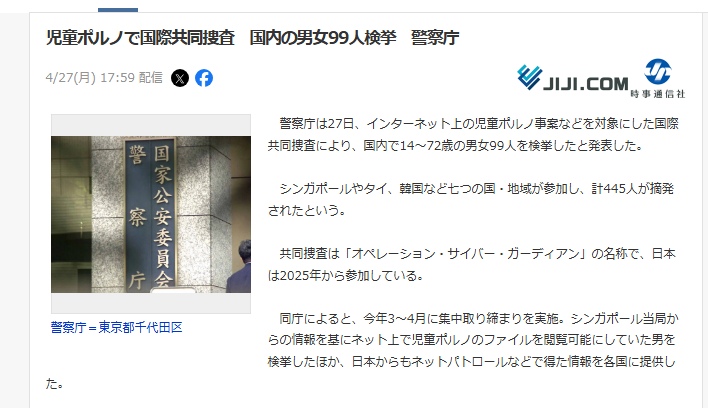 | … | 3無念Nameとしあき26/04/27(月)18:32:09No.1403802730そうだねx21他の国の逮捕者数を書かないところが時事通信らしいな |