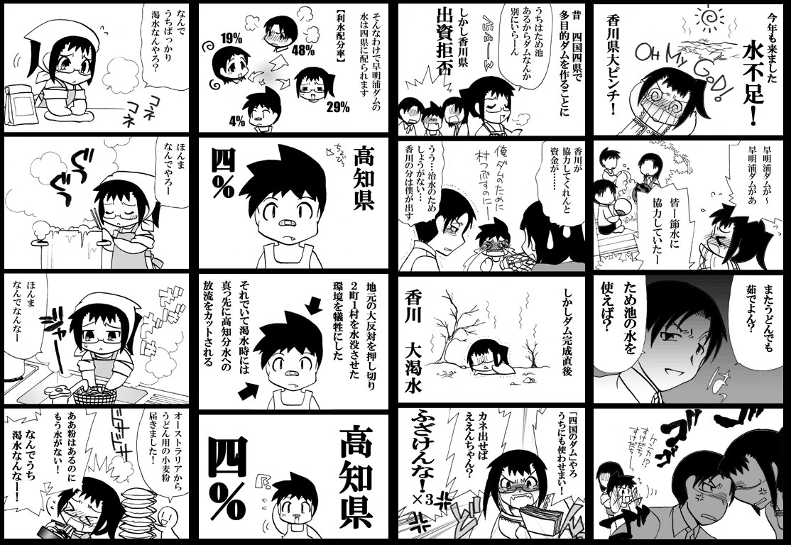 | … | 36無念Nameとしあき26/04/28(火)09:44:40No.1403928317そうだねx4ダム建設中の1973年に香川県が深刻な水不足で大ダメージを受けた際、早明浦ダムの建設を主導してきた当時徳島県は「橋建設の優先権くれるのなら水はあげるよ」と言うスタンスであったためすんなり許可を出した。特に徳島県知事であった武市恭信の尽力があった点が大きい。翌年の1974年に暫定豊水水利権による香川県への通水をわずか一ヶ月で実現させた。 |