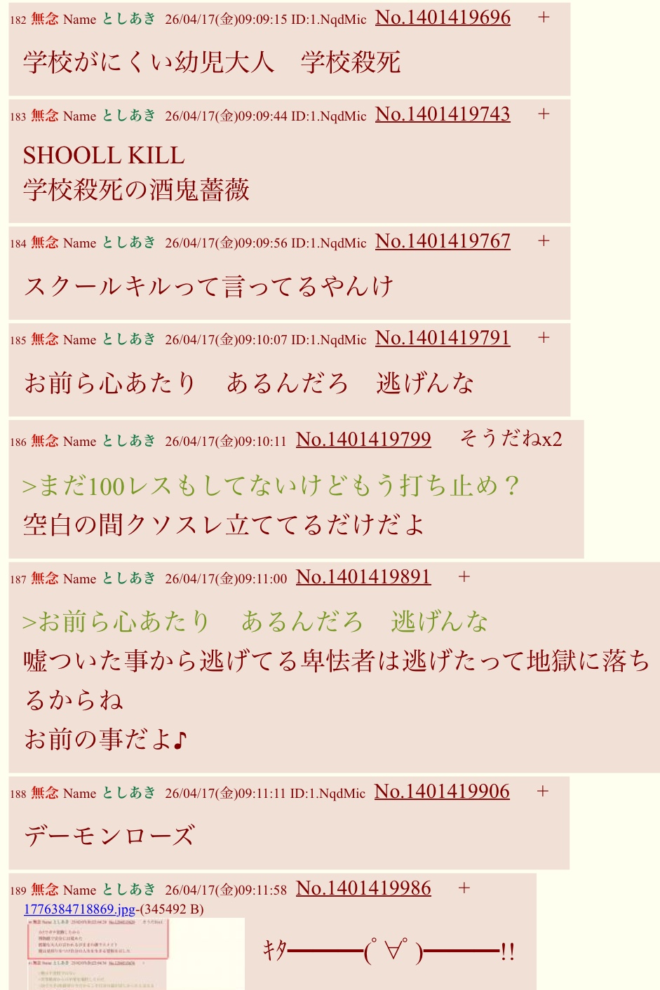 | … | 9無念Nameとしあき26/04/28(火)15:13:14No.1403975887そうだねx1>>お前はネット上でもリアルでもランク外だよ |