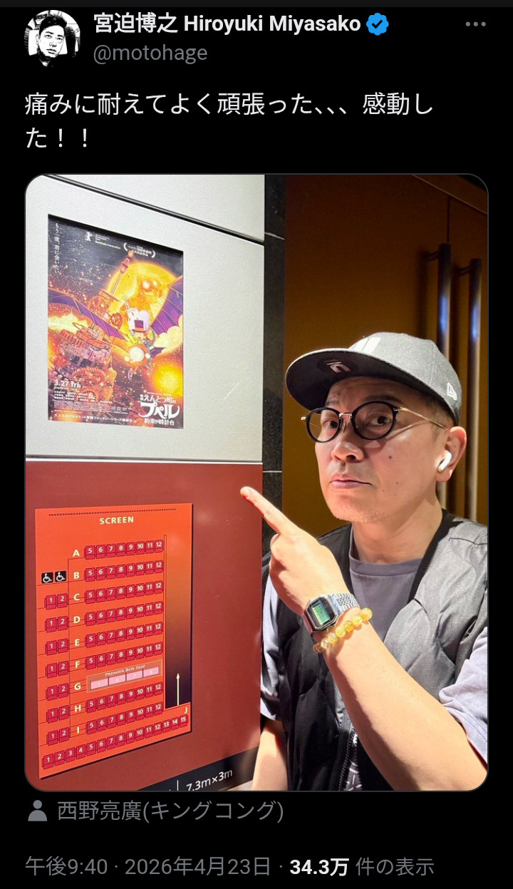 | … | 34無念Nameとしあき26/04/28(火)21:07:22No.1404051957そうだねx2>4月中旬時点(4/19頃): 累計興収 約4.31億円 |