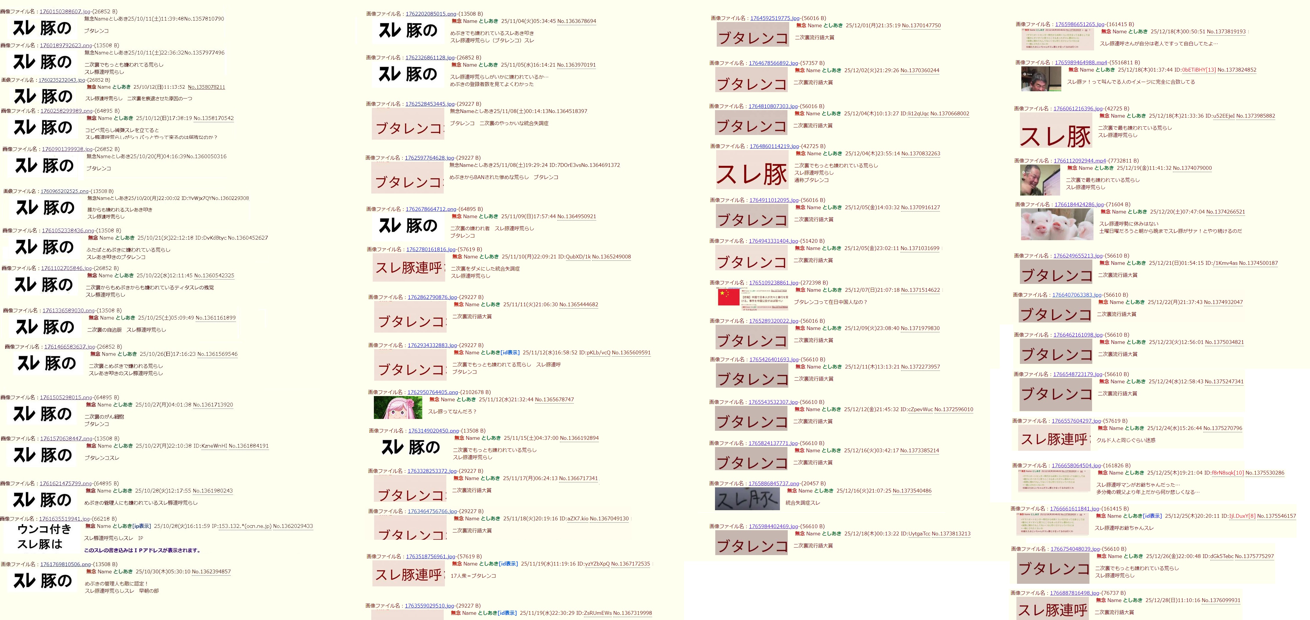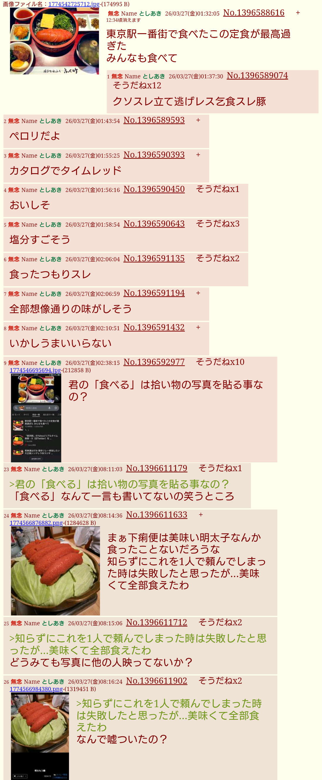 | … | 90無念Nameとしあき26/04/30(木)07:13:45No.1404369627+マジでソンキってのがふたばのどの掲示板荒らしてたのか教えてくれよ |