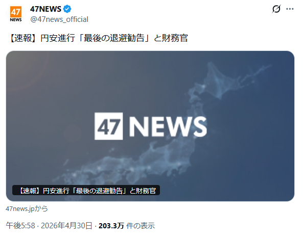 | … | 93無念Nameとしあき26/04/30(木)22:51:23No.1404552768+防衛ライン160円とバレたら |