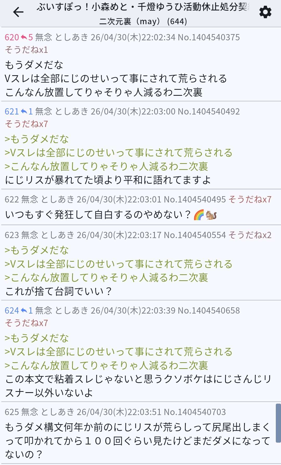 | … | 19無念Nameとしあき26/04/30(木)22:24:49No.1404546108+>ただにじリスという悪者がいる!って主張にかこつけて |