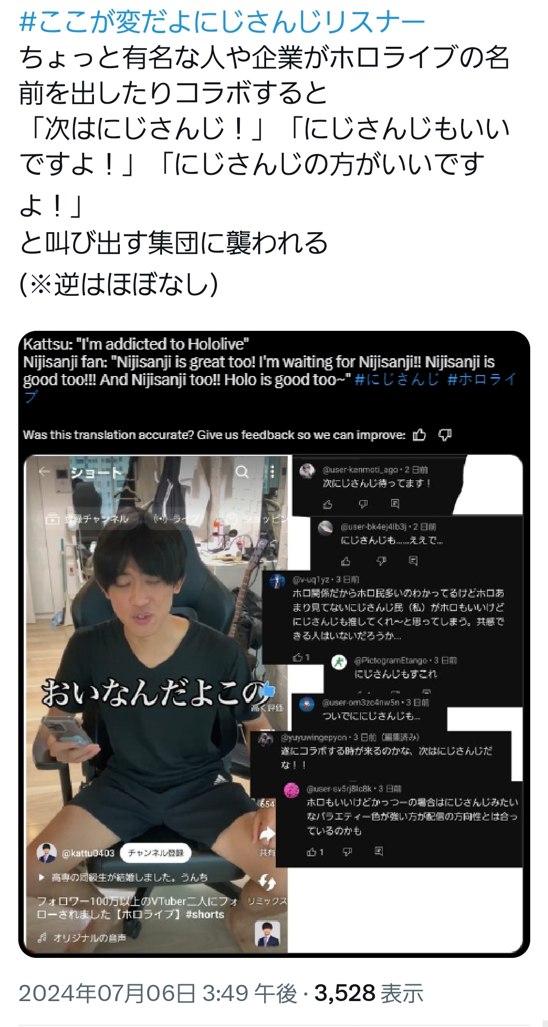 お仲間が逮捕までされている事実を突きつけられたにじさんじリスナーの人生やいかに