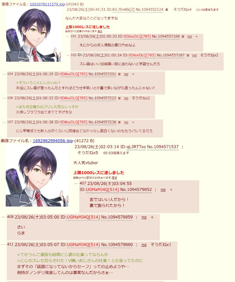| … | 50無念Nameとしあき26/04/30(木)22:41:30No.1404550287そうだねx43>ファン太解雇と無期限休止で暴れてるのはにじリス |