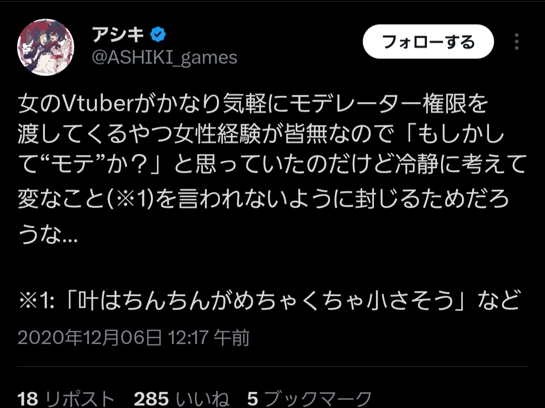| … | 17無念Nameとしあき26/04/30(木)22:23:36No.1404545812そうだねx7ぶいすぽっさんに開示請求されて俺は悪くねぇ!って示談蹴るやついるくらいだからな…アンチは何考えてるかわからん |