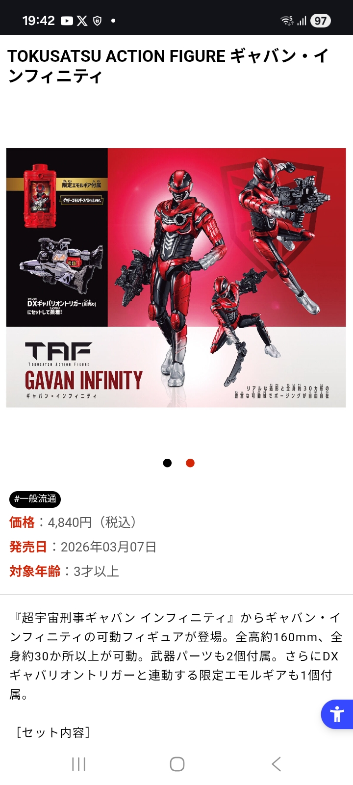 | … | 546無題Name名無し 26/02/22(日)21:29:41No.137377+ 1771763381517.jpg-(91336 B) >ギャバンインフィニティの場合、メッキ不可避なSHフィギュアーツより来月発売のアクションフィギュアのほうがガシガシ遊ぶのに向いてそう |