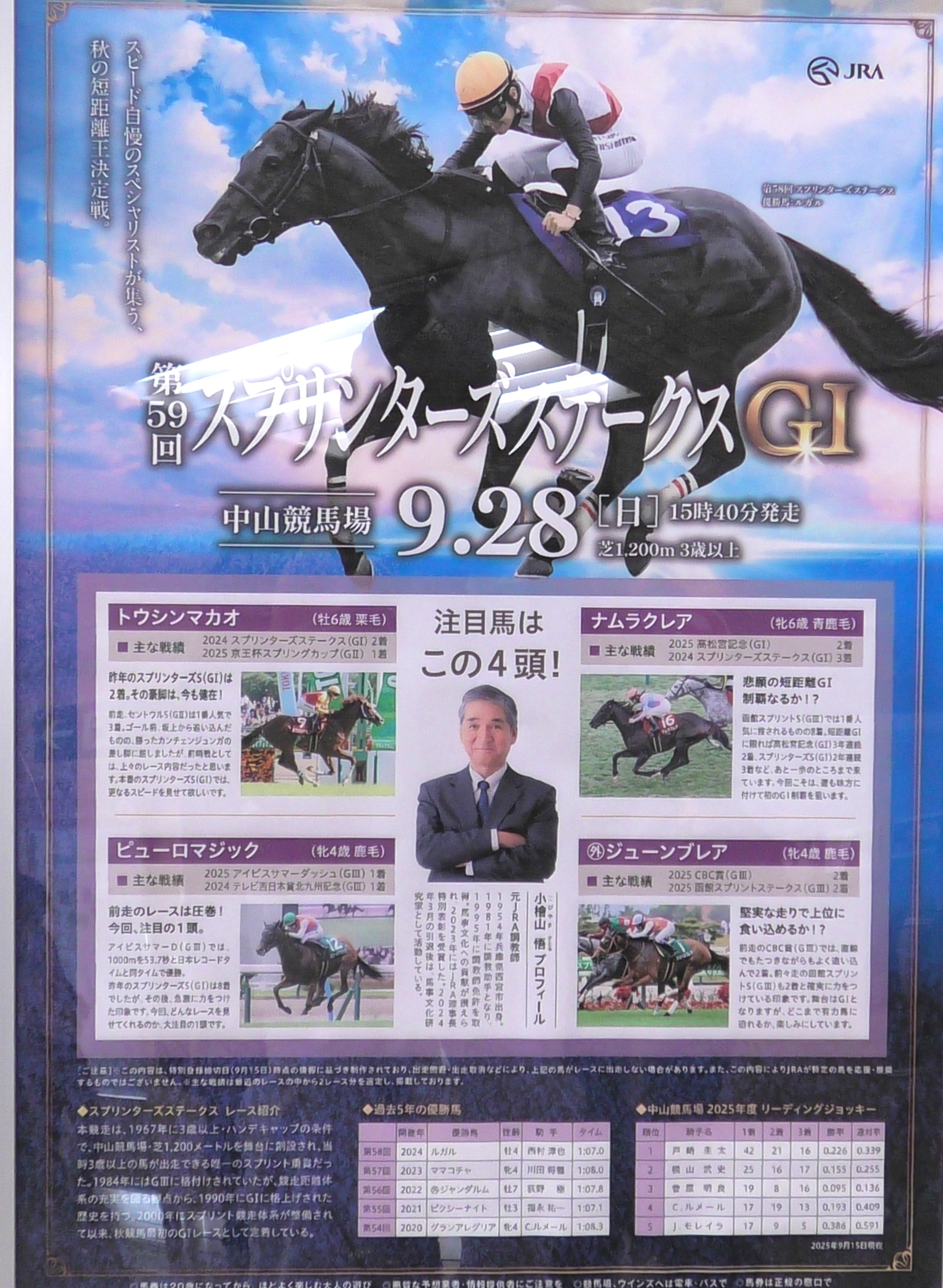 … | 2無題Name名無し 25/09/27(土)19:15:23No.96326+ 1758968123806.jpg-(1321059 B) ![]() 小檜山悟元調教師のスプリンターズステークス |
