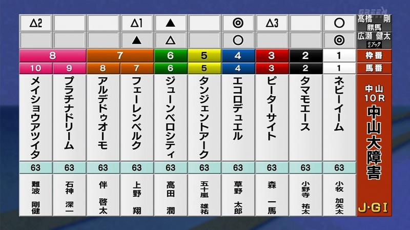 タマモエース 牡6 63.0kg 小野寺祐太