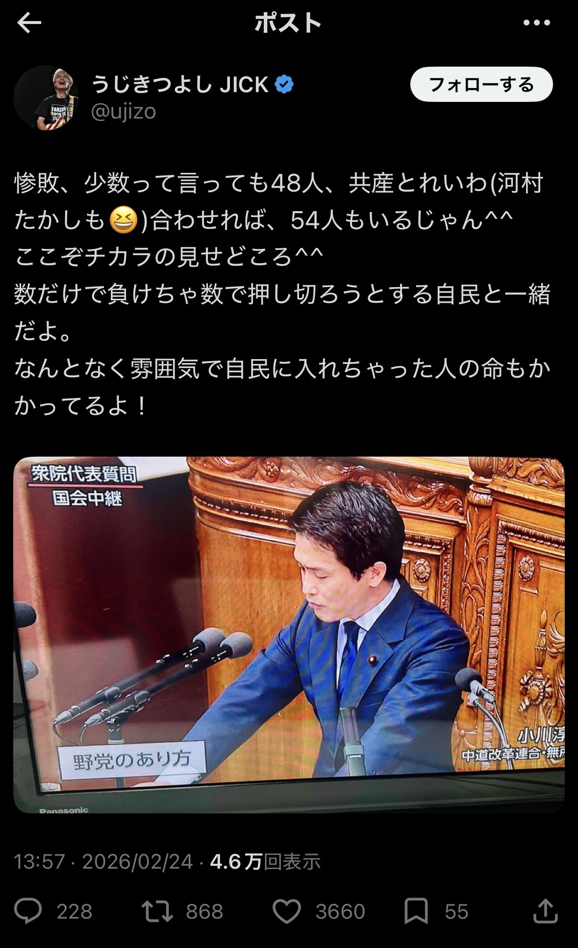 | … | 18無念Nameとしあき26/02/24(火)22:05:39No.1389805918+公明「立憲は敵に回すと手強いが、味方に付けると頼りない」 |