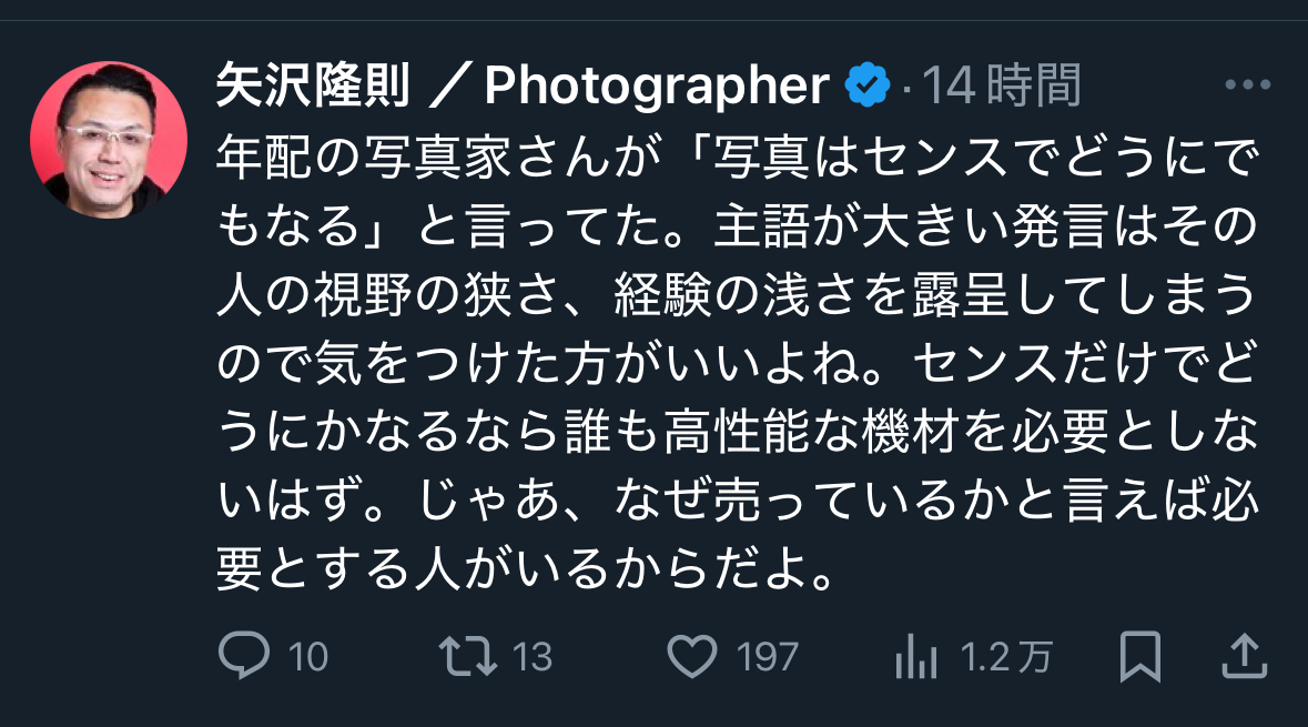 | … | 5無念Nameとしあき25/11/14(金)13:59:36No.1366024978+写真の出来はカメラの性能で決まるんだよ |
