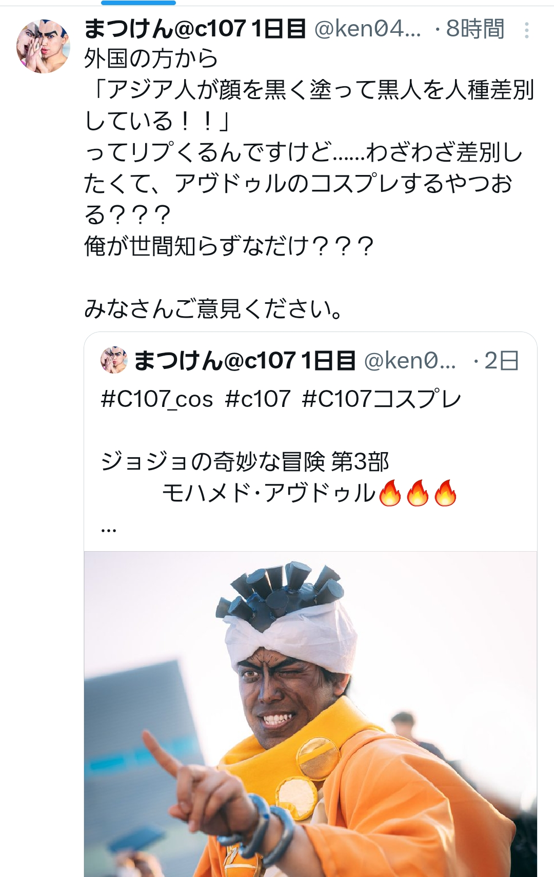 アジア人がアブドゥルのコスプレするのは黒人差別レス70件省略。全て読むには返信ボタンを押してください。