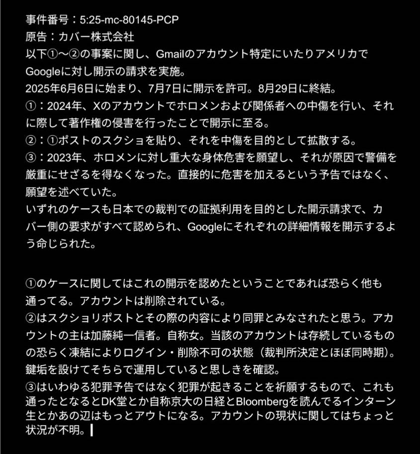 来月中旬のカルフォルニアにてたった一人で裁判を行う古参にじさんじリスナー