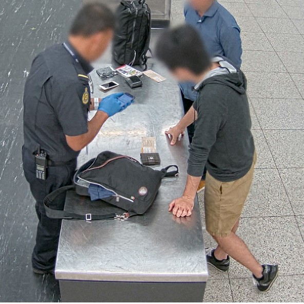 フランスメディアの報道によると、「機内でタブレット端末に表示された“およそ10歳の少女”とされる画像を客室乗務員に発見・通報された」といい、パリ到着時に逮捕された。