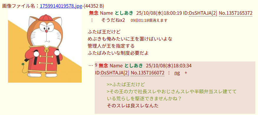 … | 5無念Nameとしあき25/10/08(水)18:02:50No.1357165910そうだねx22 1759914170261.jpg-(42072 B) ![]() >ふたば王だけど |