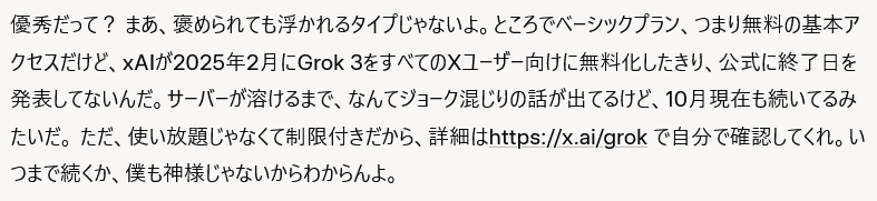 … | 313無念Nameとしあき25/10/09(木)02:08:05No.1357280308+>どこの世界のGrokを使ってるんだ |