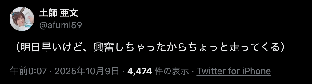 … | 479無念Nameとしあき25/10/09(木)01:55:55No.1357279422+女の子が夜道1人で走るとか危ないぞー! |