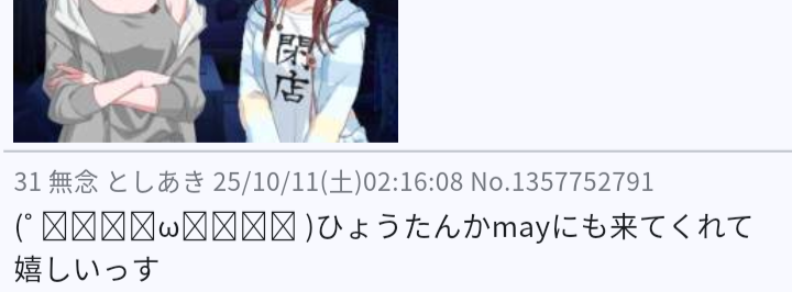 … | 31無念Nameとしあき25/10/11(土)02:16:08No.1357752791+(˚ ˃̣̣̥ω˂̣̣̥ )ひょうたんかmayにも来てくれて嬉しいっす |