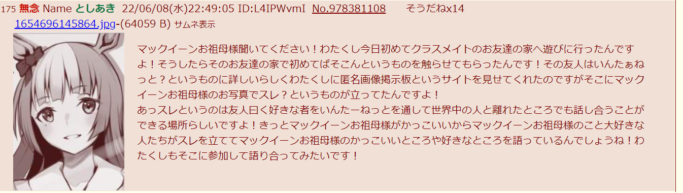 … | 78無念Nameとしあき25/10/12(日)18:57:51 IP:14.9.*(enabler.ne.jp)No.1358193690そうだねx5 1760263071273.jpg-(321962 B) ![]() >マックイーン汚すな |