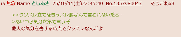 … | 104無念Nameとしあき25/10/12(日)18:46:47No.1358190627+どっちも荒らしdel |