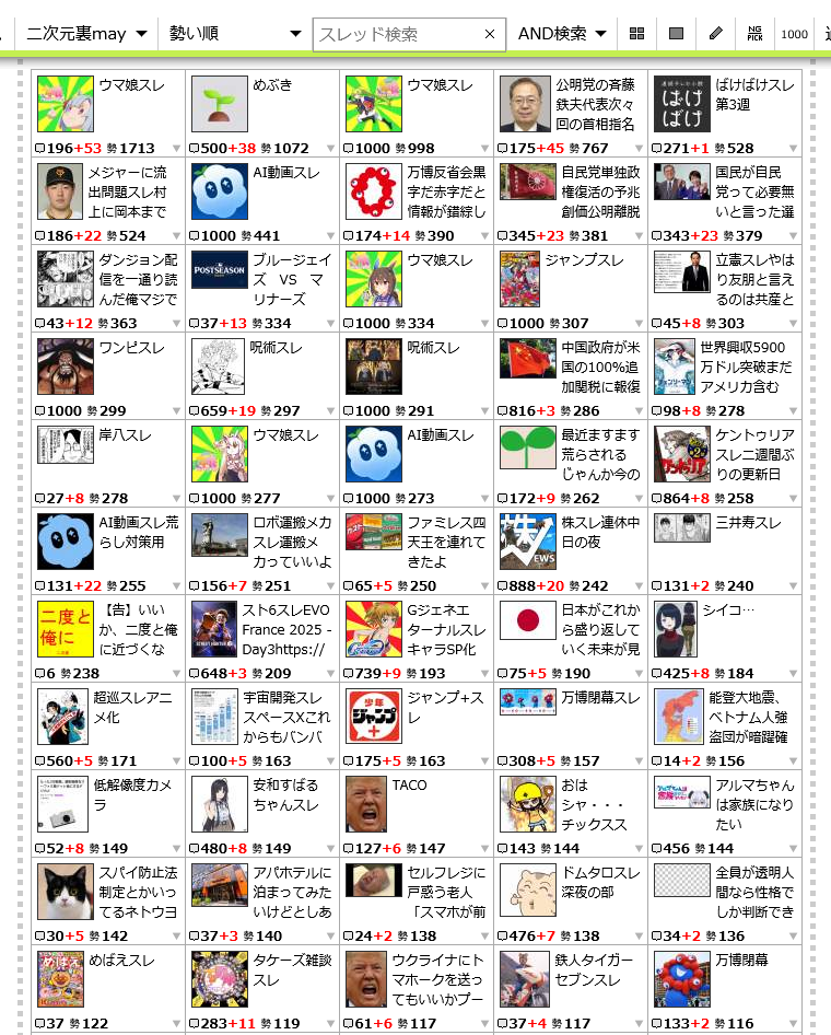 … | 200無念Nameとしあき25/10/13(月)09:33:42No.1358352008+ 1760315622681.jpg-(376606 B) ![]() >まじで政治スレの勢いがすごい |