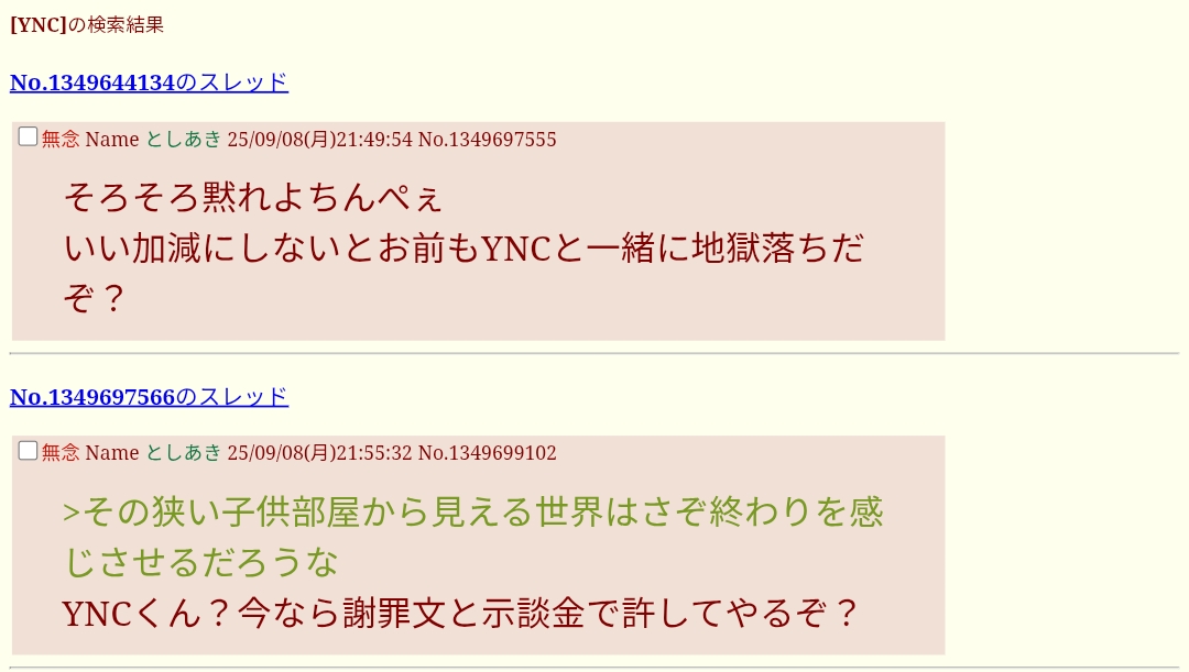 … | 263無念Nameとしあき25/10/13(月)17:59:37No.1358463090そうだねx1>中傷ログって何? |