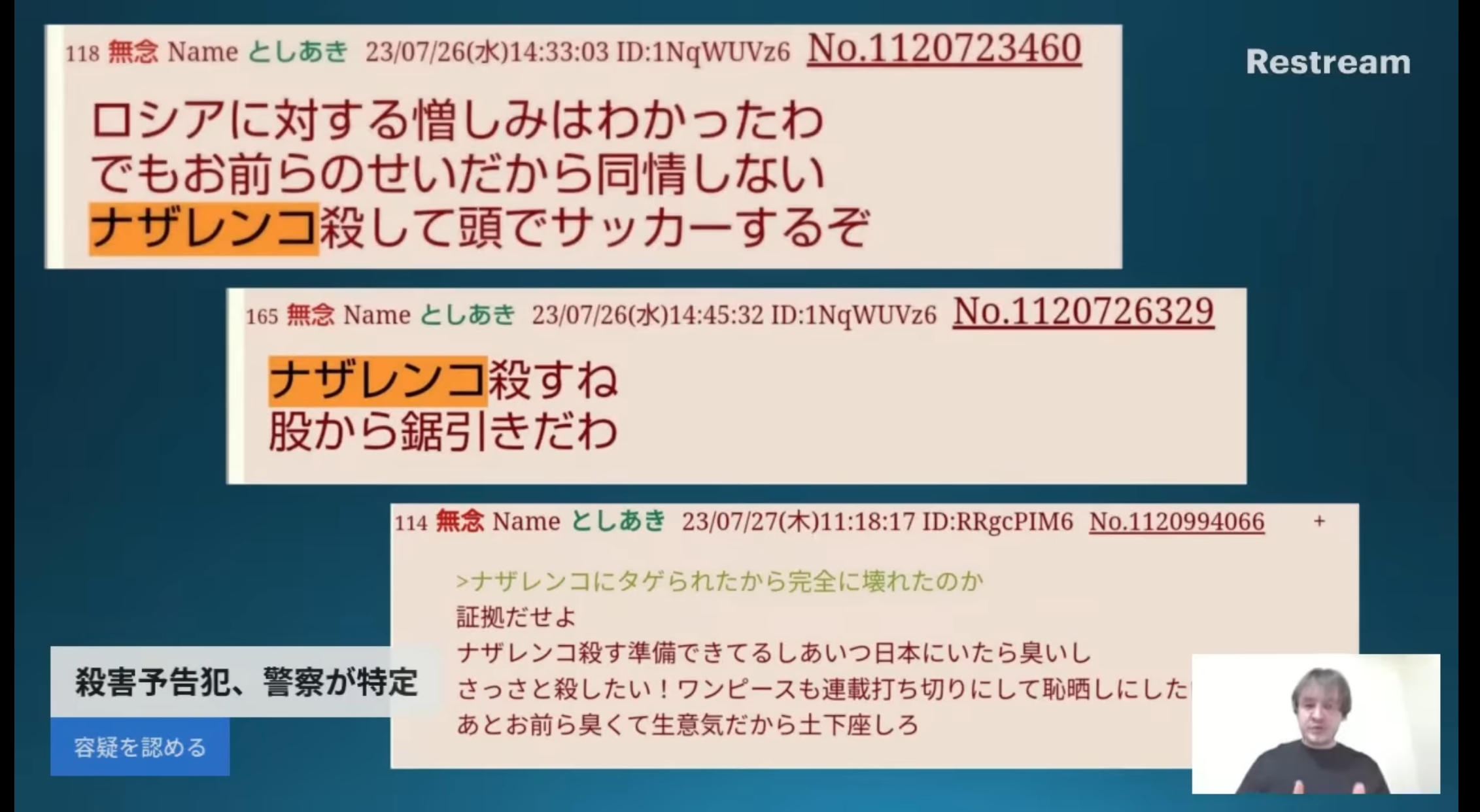 … | 43無念Nameとしあき25/10/13(月)15:47:24No.1358433157そうだねx2殺害予告も大事になるなんて思わなくて自分から宣伝してたもんなぁ |