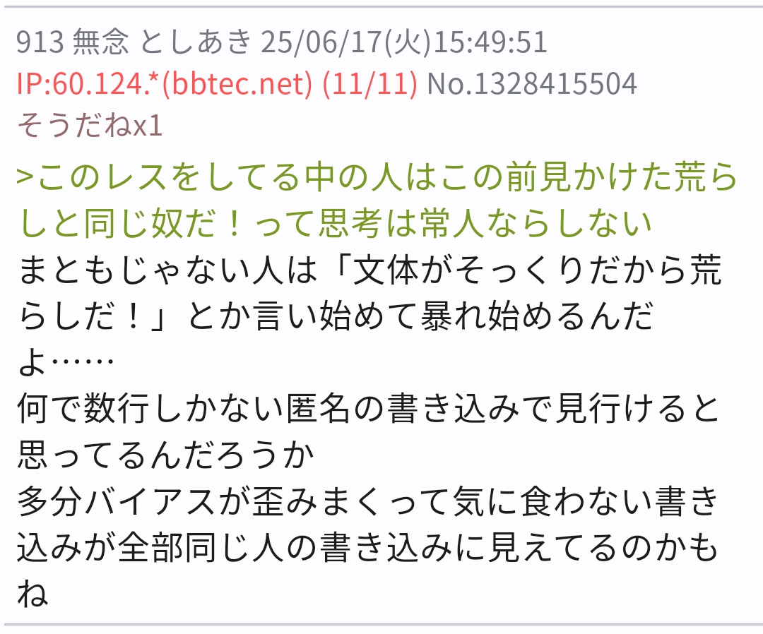 … | 57無念Nameとしあき25/10/13(月)15:50:16 ID:FAf6jr9.No.1358433836+>ガチでイラついてるんだなコイツ |
