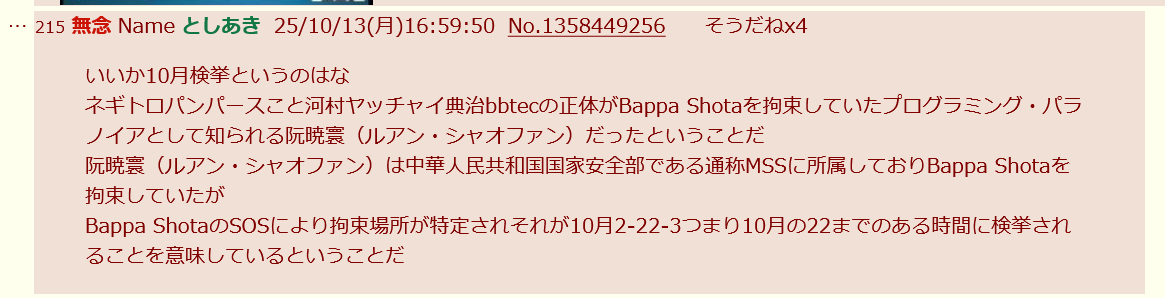 … | 215無念Nameとしあき25/10/13(月)16:59:50No.1358449256そうだねx4いいか10月検挙というのはな |