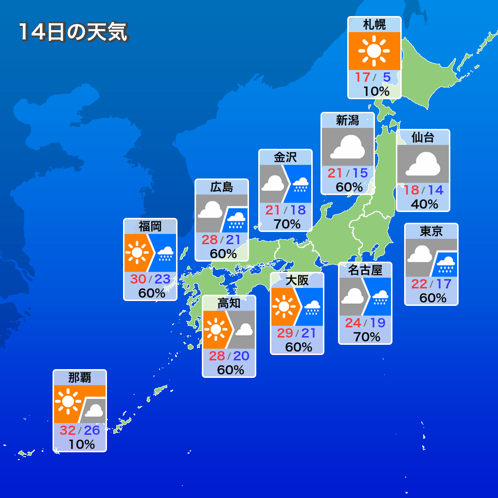 … | 5無念Nameとしあき25/10/14(火)09:03:17No.1358613436そうだねx1 1760400197274.png-(62716 B) ![]() 14日(火)は秋雨前線が本州付近にのびてくるため天気が下り坂ですぽん |